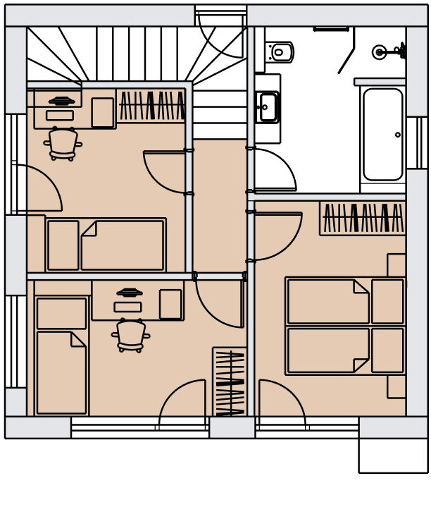 - předsíň s úložnými prostory a s schodištěm do 2. NP