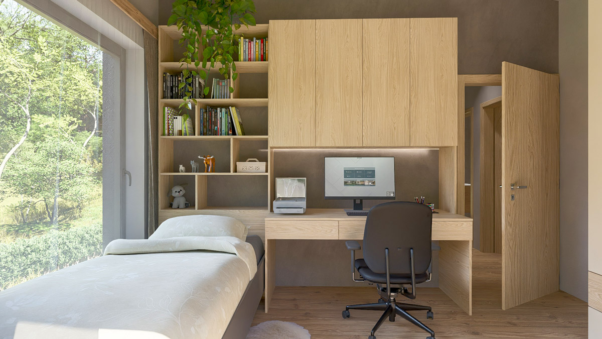 - dva pokoje využitelné jako dětské pokoje, pokoje pro hosty či pracovny